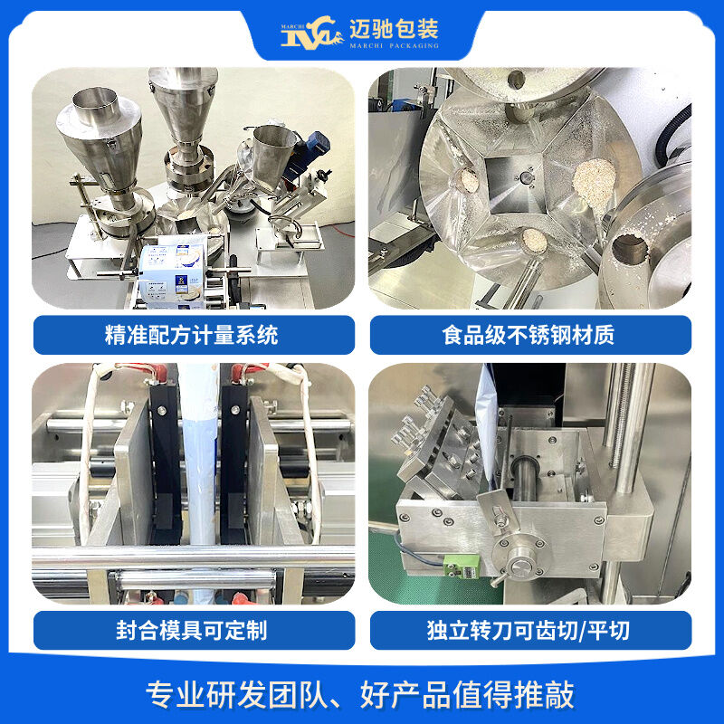 迈驰是一家专业生产全自动三合一精准配方颗粒粉末包装机厂家,可根据客户不同物料特性定制一对一方案,为您解决包装精度问题。整厂方案设计,支持非标定制。26年包装行业经验,助力生产企业稳定生产,提高产能。